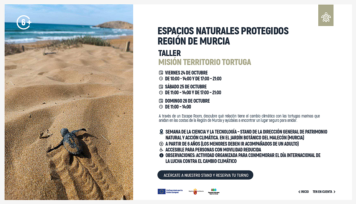 A través de un Escape Room, descubre qué relación tiene el cambio climático con las tortugas marinas que anidan en las costas de la Región de Murcia y ayúdalas a encontrar un lugar seguro para anidar.