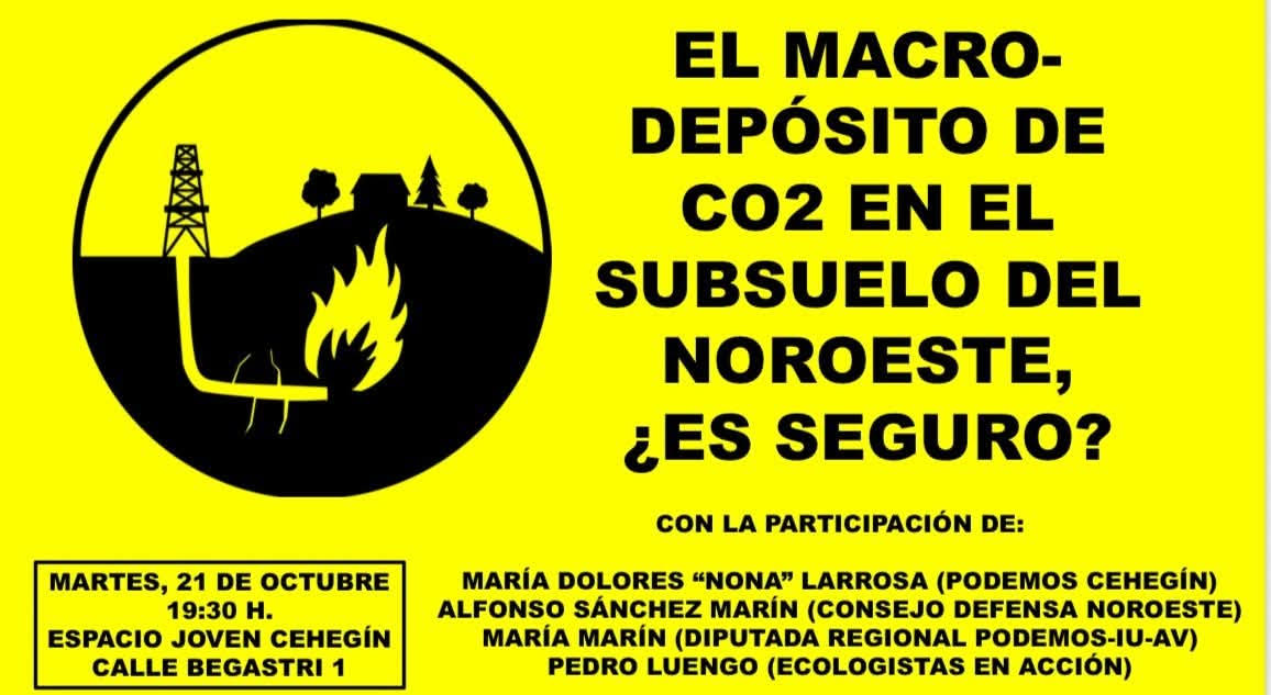 Acto INFORMATIVO sobre las amenazas del deposito subterráneo de CO2 en el Noroeste, titulado 'El macro-depósito de CO2 en el subsuelo del Noroeste, ¿es seguro?'.