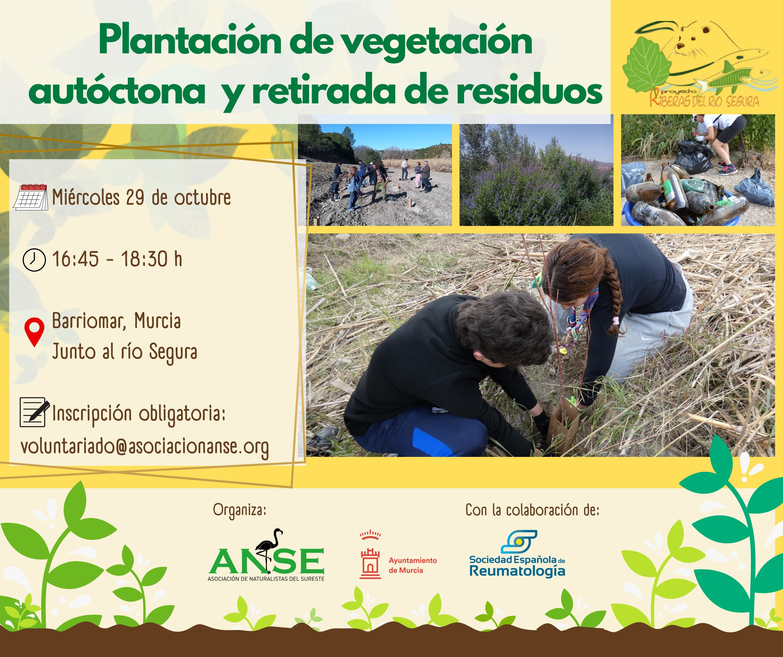 Jornada participativa donde se plantará vegetación autóctona y se retirarán residuos en la ribera del río Segura, en Barriomar (Murcia).