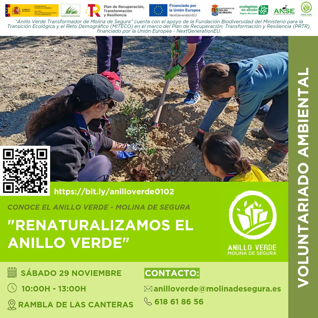 Dentro del programa de actividades del Anillo Verde Transformador de Molina de Segura, que se basa en la importancia de la infraestructura verde y su función como herramienta eficaz que aporta beneficios ecológicos, económicos y sociales mediante soluciones naturales.