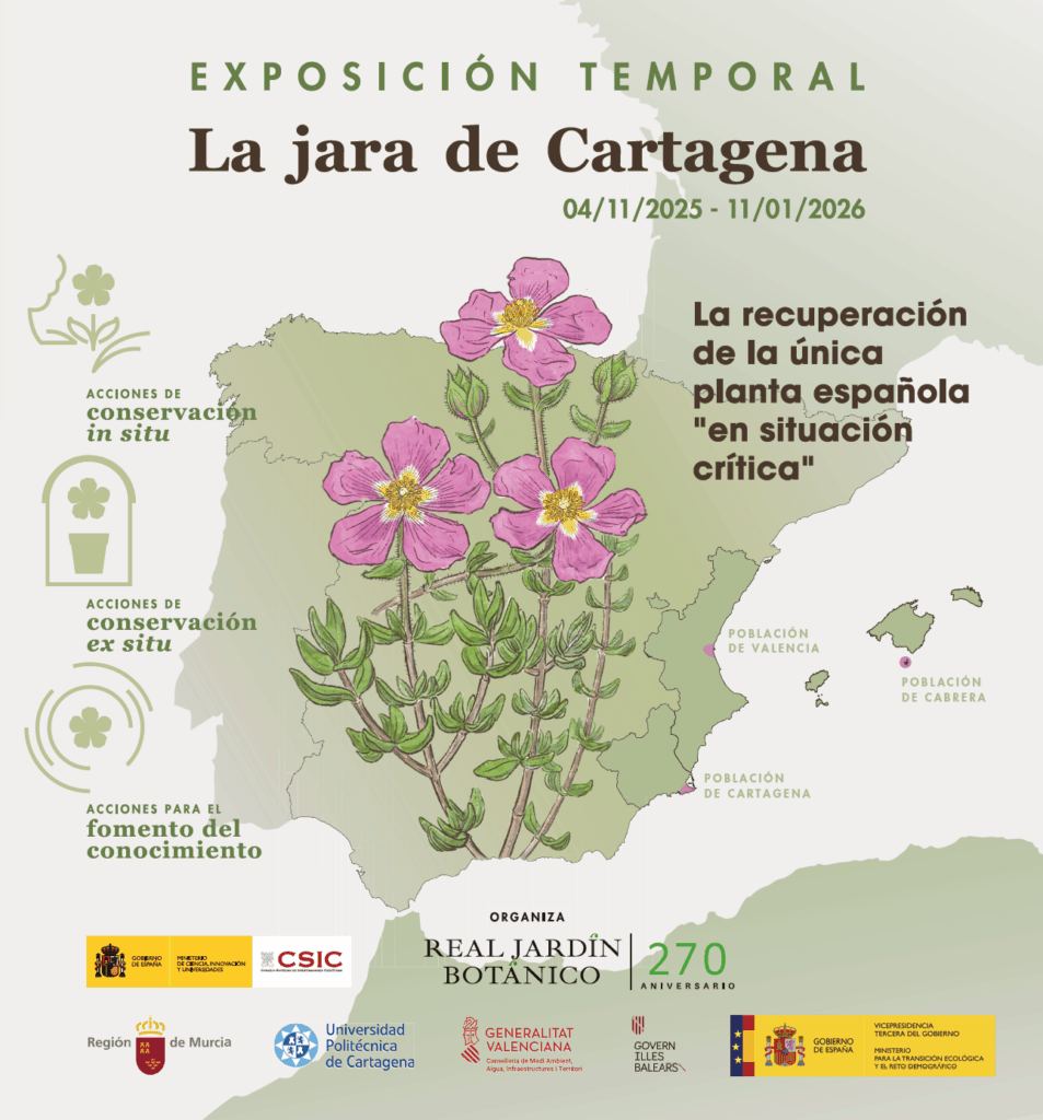 La exposición itinerante 'Jara de Cartagena' llega al Real Jardín Botánico (RJB) de Madrid para dar a conocer la historia de recuperación de Cistus heterophyllus subsp. carthaginensis, la única planta española catalogada oficialmente en situación crítica.