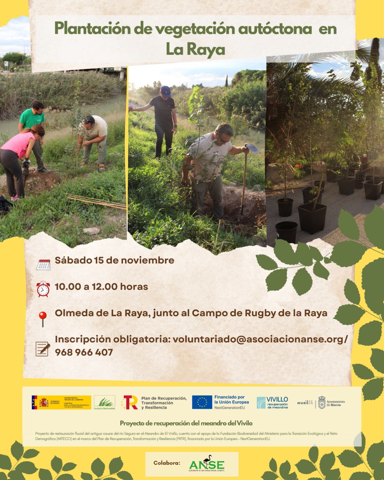 Actividad de voluntariado ambiental en el municipio de Murcia, donde se reforzará la olmeda de La Raya con la plantación de nuevos ejemplares de la especie, impulsando la presencia de vegetación autóctona.