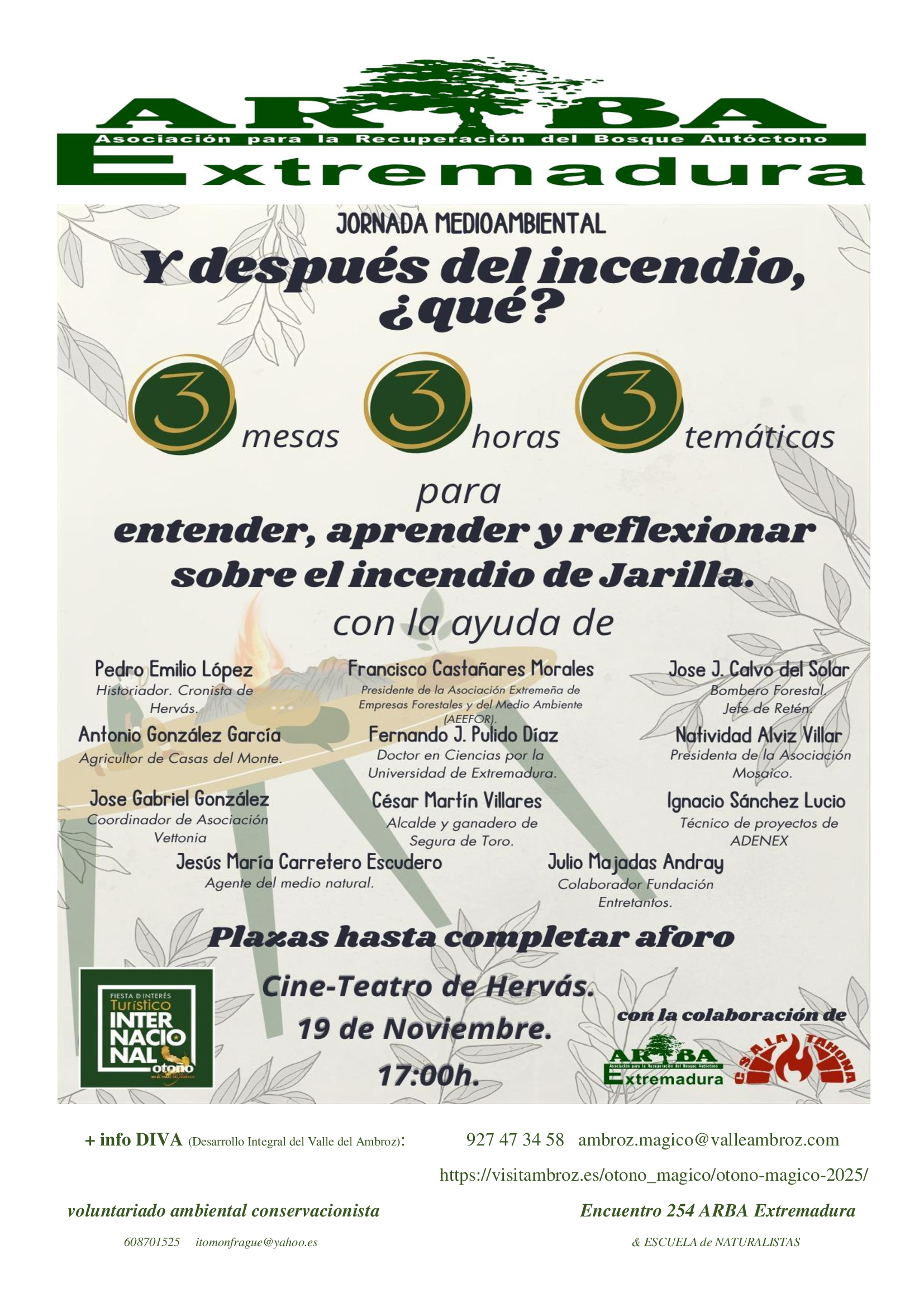 Jornada titulada 'Y después del incendio, ¿qué?' para entender, aprender y reflexionar sobre el incendio de Jarilla.