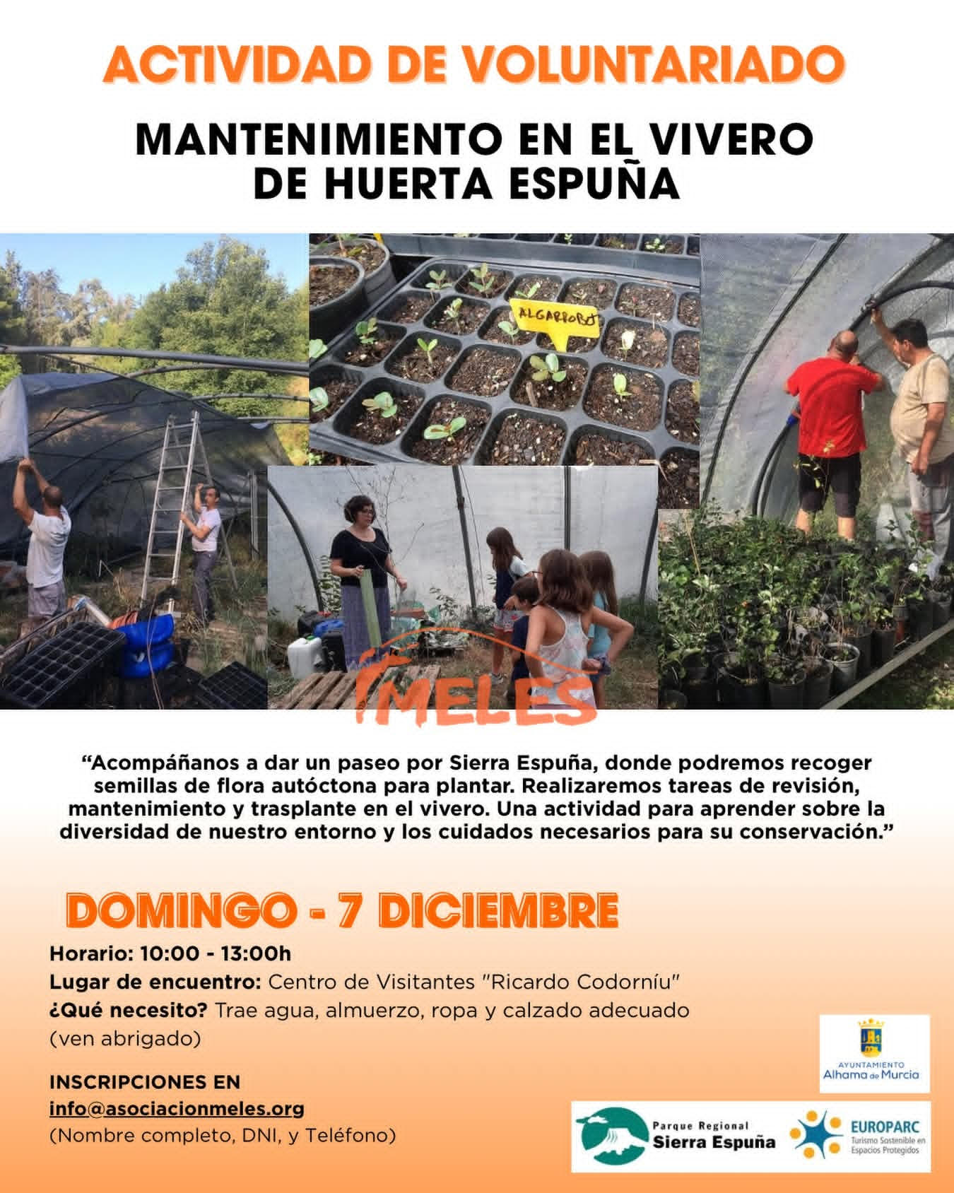 Para realizar tareas de mantenimiento del vivero, revisión de plantas, trasplantes y recogida de semillas de flora autóctona, aprendiendo sobre la biodiversidad de Sierra Espuña y cómo cuidarla.