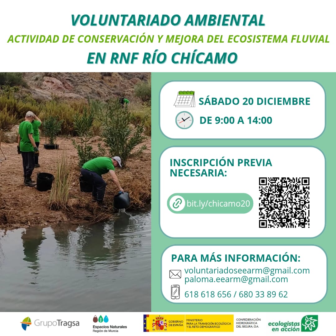 Jornada de acción directa en la Reserva Natural Fluvial del Río Chícamo, en la que se colaborará en el mantenimiento y mejora de la vegetación de ribera, el control de especies invasoras y la limpieza selectiva de residuos para proteger este valioso ecosistema.