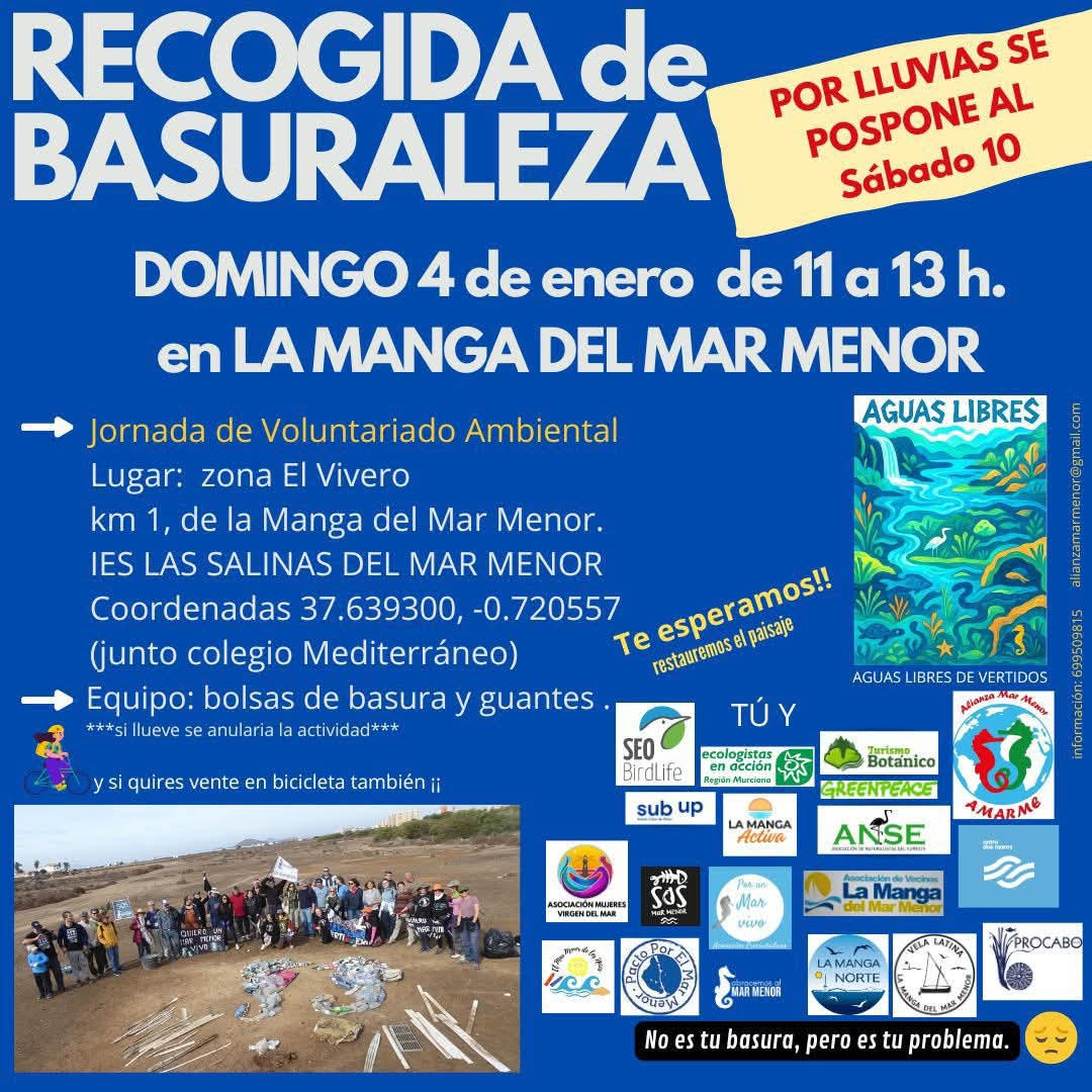 Jornada de voluntariado ambiental para la recogida de basuraleza en la Manga del Mar Menor.