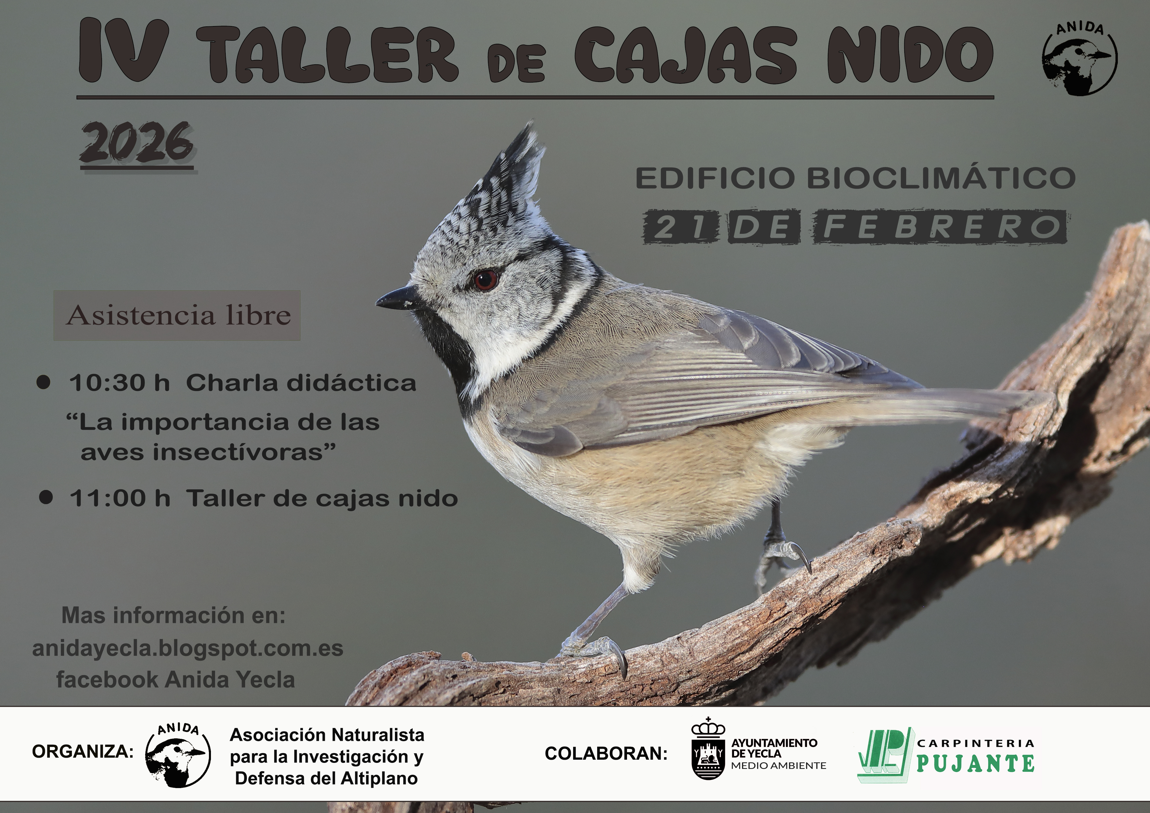 - 11:00 h: Taller de elaboración y montaje de cajas-nido para aves.