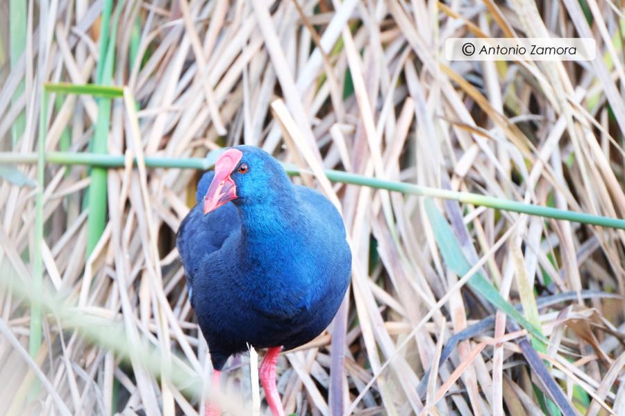 - Foto 5: Un precioso calamón se asoma entre el carrizo.