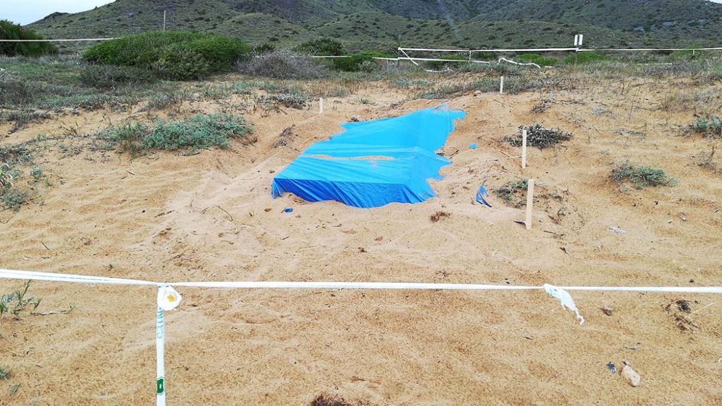 El nido de tortuga boba en Calblanque recibe protección especial por el temporal