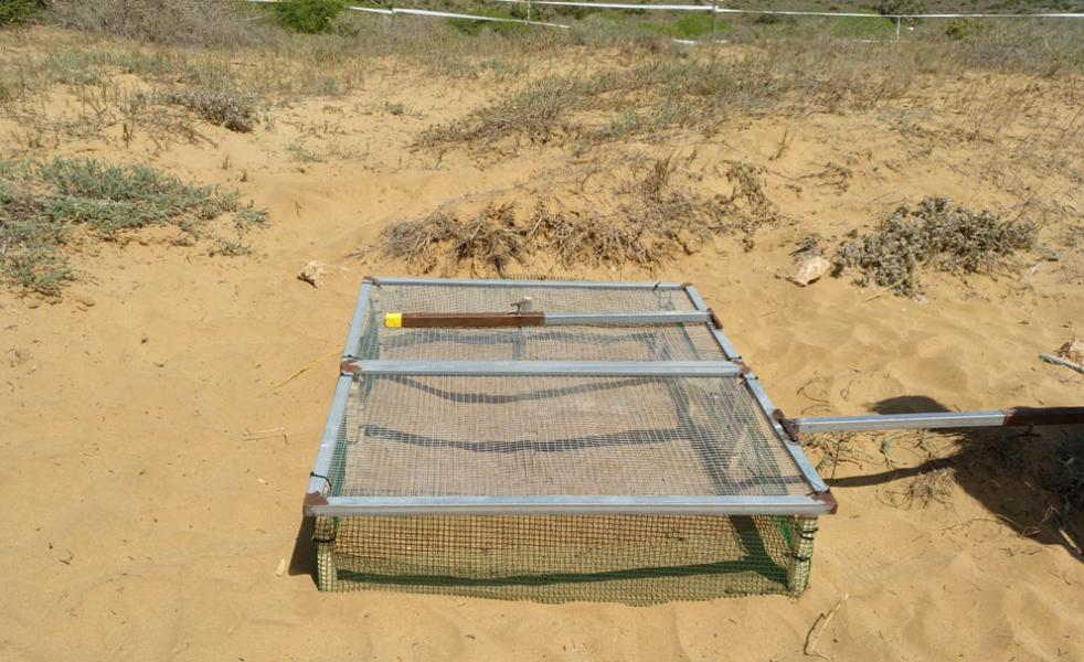 Aspecto del nido de tortuga boba, ya protegido de cara a estas próximas horas de tempora. Imagen: CARM