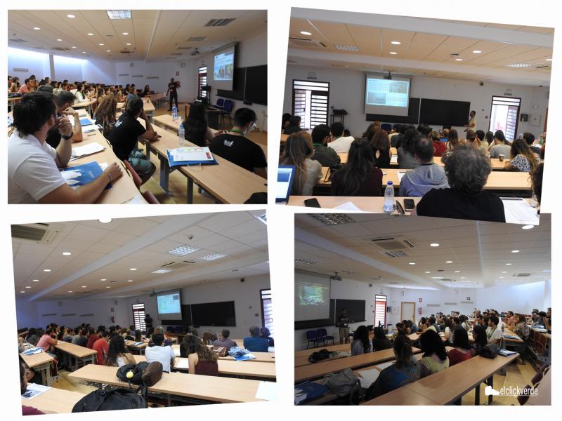 En cuanto a la participación, cada año de congreso es distinto, si bien la asistencia se viene manteniendo. El año pasado resultó más internacional, y éste, por contra, cuenta con ponentes llegados de más localizaciones diferentes de España. En total, hay casi 70 ponencias, que hoy han comenzado con la exposición del Catedrático de Botánica de la Universidad de Murcia José María Egea, y que han continuado con la respuesta al fuego de arañas y hormigas, en una divertida charla a cargo de José Manuel Vidal-Cordero, o la diferencia en el peso de distintas poblaciones de dos bonitos pajarillos, el carbonero común (Parus major) y herrerillo común (Cyanistes caeruleus), contadas por Abelardo Requena-Blanco. Francisco Díaz-Ruiz ha abordado la dieta de la gineta (Genetta genetta) en dos ambientes distintos y, después, las tendencias en dos poblaciones de cánidos silvestres en la Patagonia Austral, y hemos sabido de la enorme cantidad de aves (algunas de ellas protegidas) que visitan los pequeños cuerpos de agua en el sureste ibérico de la mano de José Manuel Zamora Marín. Ettore Emanuele Dettori contaba cómo la nutria de nuestro Segura se inclina más por el cangrejo americano que sus congéneres de otros ríos, y el profesor Francisco José Oliva-Paterna ha relatado algunos de los logros de la conexión del cauce en el Proyecto LIFE+ Segura-Riverlink. Los carnívoros en el Medio Atlas africano han protagonizado la ponencia de Brais Mañá Varela; Alisa Aliaga-Samanez ha relatado sus descubrimientos sobre la fiebre amarilla y la identificación de áreas de riesgo incluso donde aún no se ha registrado la enfermedad, mientras que ha cerrado la mañana Adrián Martín-Taboada con un estudio sobre la enfermedad de Lyme, originada por varias especies de garrapatas.