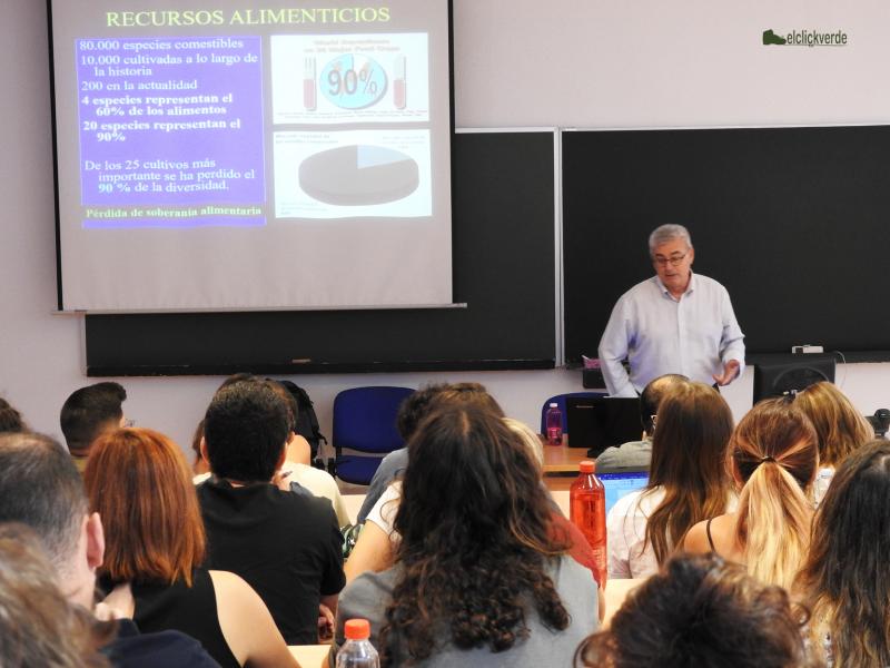 José María Egea, Catedrático de Bortánica, durante la po9nencia inagural del la primera temática del Congreso.