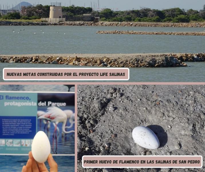 Los flamencos de las Salinas de San Pedro han realizado por primera vez una pequeña puesta, apenas dos huevos, en un intento de criar que no ha tenido éxito, pero que supone una risueña noticia para el Parque Regional. Gustavo Ballesteros, coordinador del Proyecto LIFE Salinas y descubridor de ambos nidos, considera sin embargo que la tentativa no va a tener más recorrido y cree que «los flamencos nunca van a criar aquí».
