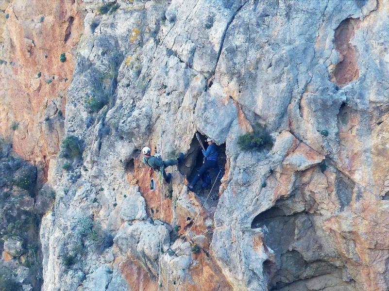 Faltaba confirmarlo, y para ello tenían que descender al nido y acreditar científicamente que pertenecía a la especie. Finalmente, descolgándose con cuerdas, lo consiguieron Cesáreo Punzano y Montoro el pasado 12 de enero. En la cavidad, la comprobación in situ corroboró lo que era más que una sospecha. Como esperaban, el nido era un acúmulo de ramas típico. Era grande, con 80 centímetros de altura, unas dimensiones de 170 x 130 centímetros, y un peso estimado de más de media tonelada. Conocedores de su valor, los exploradores apenas intervinieron en la estructura: “por supuesto, no queríamos romperlo para investigar lo que había debajo y mucho menos bajar el nido. De hecho, está intacto, se ha quedado allí, en la Cresta del Gallo, y se puede disfrutar de su contemplación con unos prismáticos; pero hemos demostrado que es de quebrantahuesos”, defiende Montoro. Así pues, en una actuación conscientemente muy respetuosa, solamente se recogieron muestras de la superficie, elementos que estaban en el piso de la oquedad, que corrían el riesgo de caer al suelo, pero que son igualmente “materiales de enorme antigüedad que constituyen un verdadero tesoro etnológico, histórico y científico”, subraya.