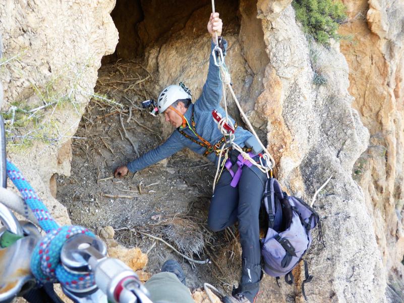 Francisco Montoro, junto al resto del equipo, tomando muestras en la boca del nido. Imagen cedida por Paco Montoro