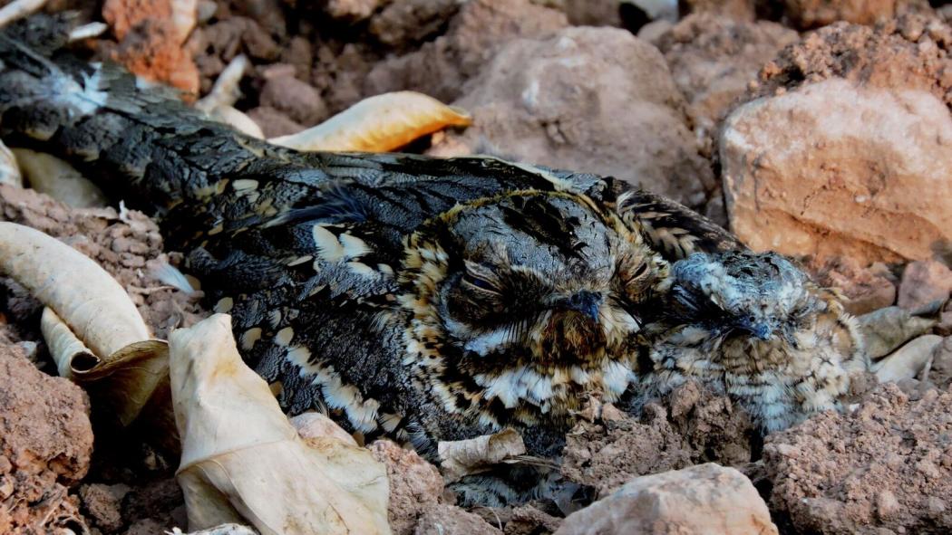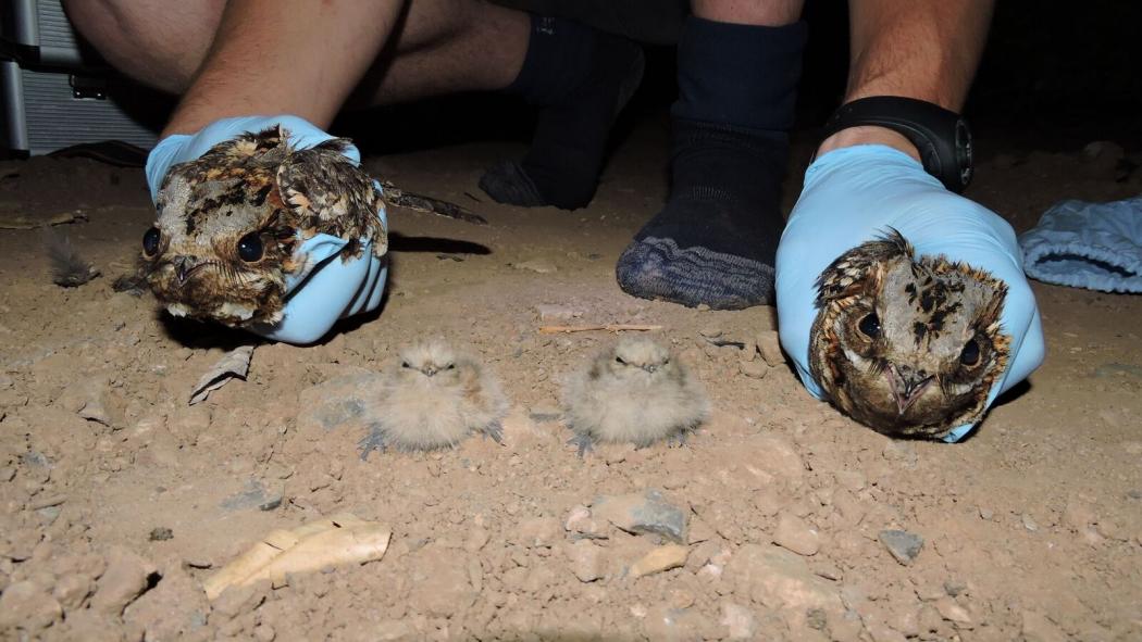 El proyecto, completamente voluntario, busca mejorar la información y conservación del chotacabras cuellirrojo (Caprimulgus ruficollis), el mayor de sus congéneres en Europa y que en España comparte nombre precisamente con el chotacabras europeo, de estampa más gris. Los trabajos, que avanzan a grandes pasos, están permitiendo revelar aspectos desconocidos sobre la biología reproductiva de esta ave, esquiva como una sombra alada, sus amenazas y hasta las relaciones con otra fauna del lugar. “Al ser una especie muy críptica, con una estrategia de camuflaje muy desarrollada, lo que más faltaba por estudiar es la reproducción: localización de nidos, crecimiento de pollos, papel de los sexos en la incubación y crianza… Investigación básica”, aclara Zamora.
